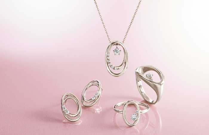 ピンクシルバーの柔らかな色味に、ダイヤモンドが透明感を添えるK10PGのジュエリーもラインナップされています。