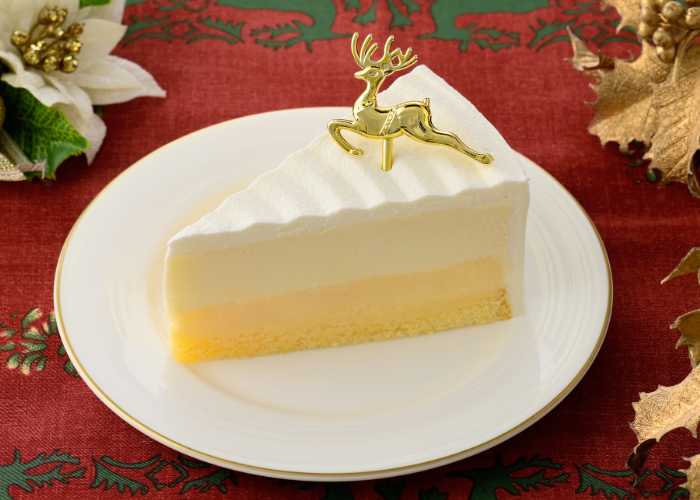 5日から販売される「雪降るベイクドレアチーズ」(520円 税込561円)は、濃厚チーズの二層仕立てとトナカイのモチーフが大人可愛い一品。