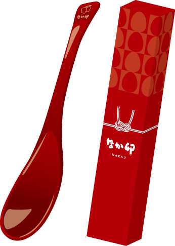 そして注目は、店舗で実際に使われている「なか卯の赤さじ(長さ約20cm)」。シックな赤色に白いうさぎロゴが映えるデザインで、食卓にさりげなく“なか卯気分”をプラスできます。