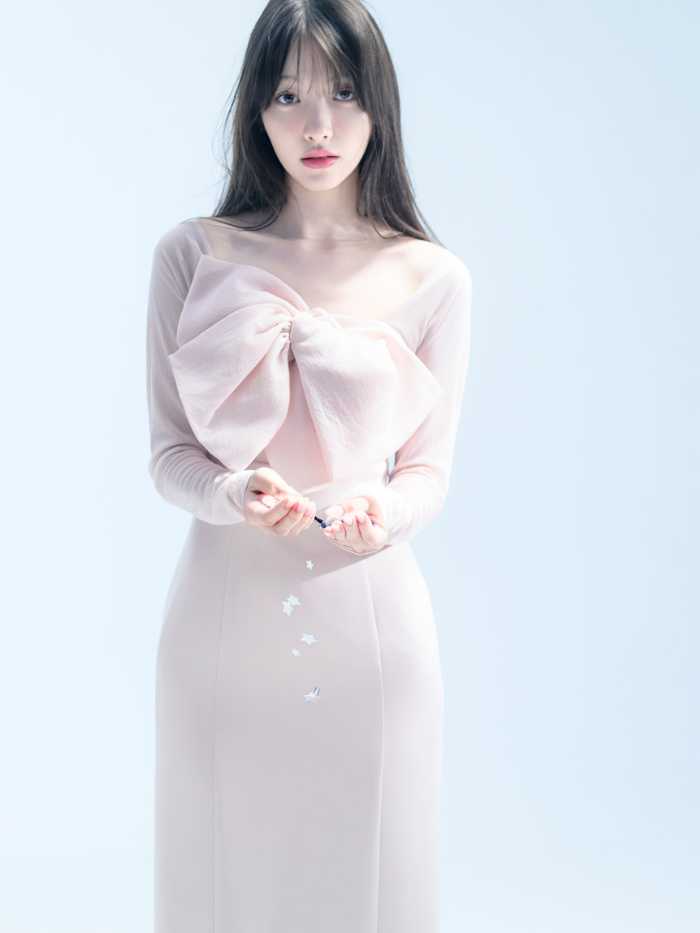 雑賀サクラならではの柔らかなシルエットと、SNIDELのエレガントなデザインが融合し、見る者を引き込むようなドレスが誕生しました。