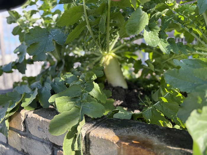 この日は、ブロッコリーや大根にスイスチャードなどが見られました。カフェで使用するお野菜にもこだわっています。(一部)