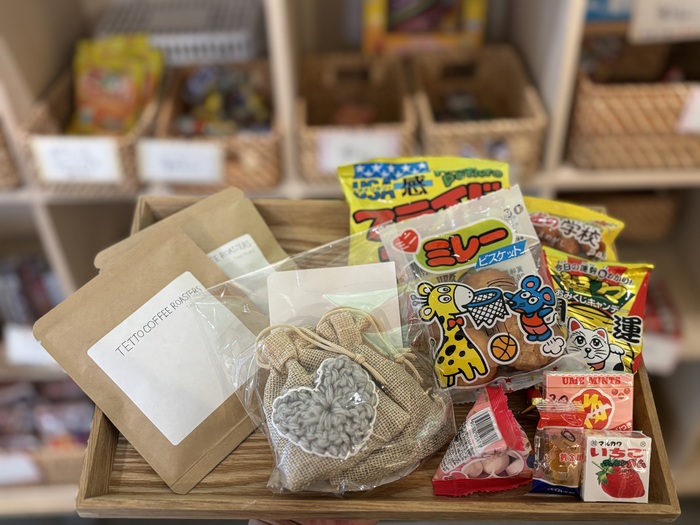 店内入口には、昔なつかしの駄菓子の販売コーナーもあります。気軽に購入できる価格で、様々なお菓子を金額と相談しながら購入できます。大人も駄菓子コーナーにはテンションがあがります。
