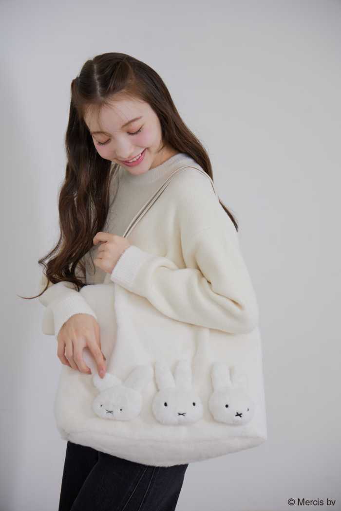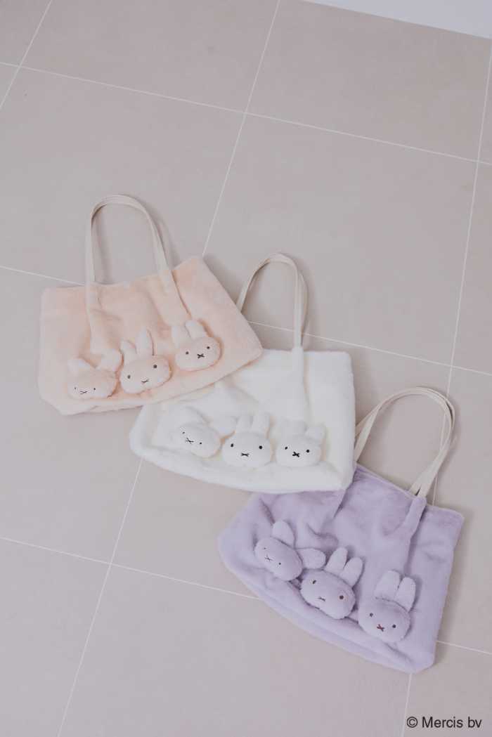「miffy 70th ファートート」(8,690円)は大容量で実用性も高く、ふわりとした質感が温かみたっぷり。淡色好きさんにも嬉しいivory、pink beige、blue grayの3色が揃います。