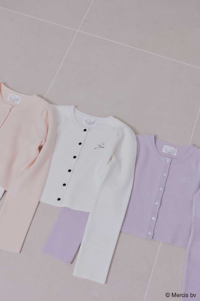 「miffy 70th 刺繍ニットカーディガン」(8,690円)はロゴ刺繍が上品で、羽織りとしてもプルオーバーとしても活躍。こちらも3色展開で、デイリーに使いやすい仕上がりです。