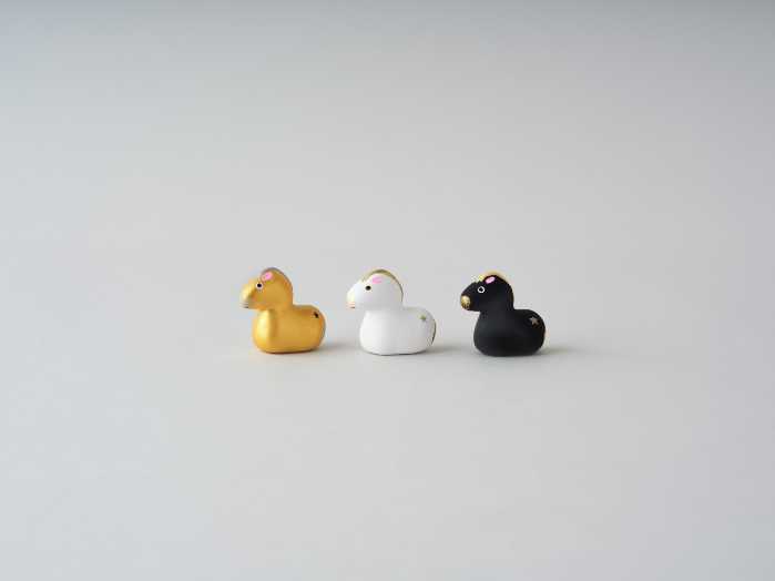 特に「干支土鈴午白」と「干支土鈴午黒」の2種類は、京都らしい紫色の胴掛けをまとった馬が美しいフォルムを誇ります。