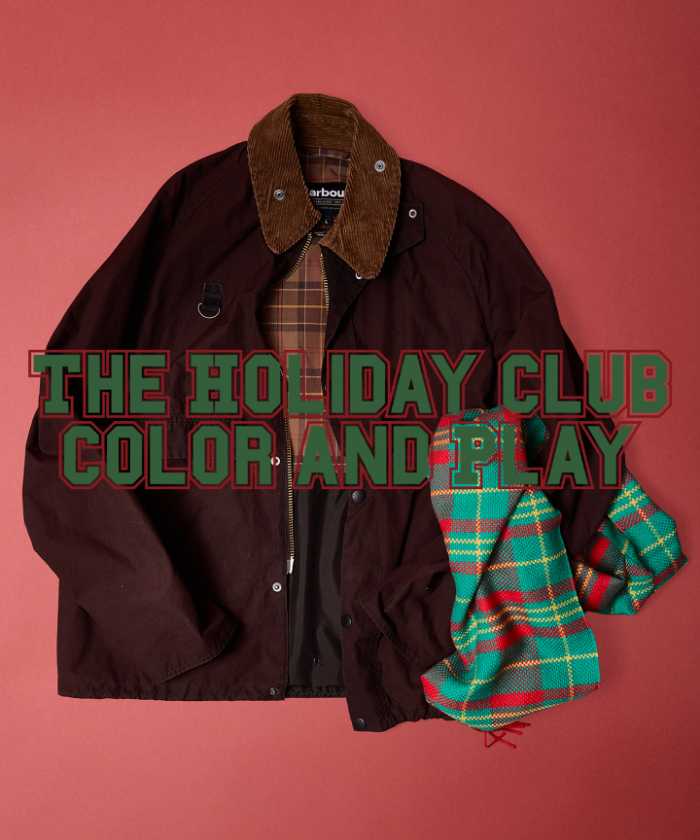 「Barbour別注SPEYジャケット」(73,700円)は、ワックスドコットンに洗い加工を施し、ヴィンテージ感とモダンさを両立した一着。深みある風合いが冬の装いに個性を添えます。