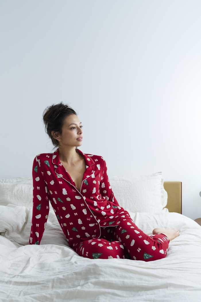 続いて「ポラークリスマスプリント モダール オープンフロント パジャマ」(15,990円)。柔らかなモダール素材を使用し、St.Polar Bear/Rossoのクリスマスプリントがかわいらしい一着。