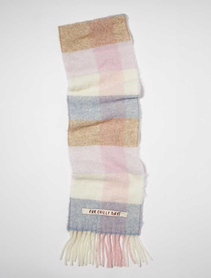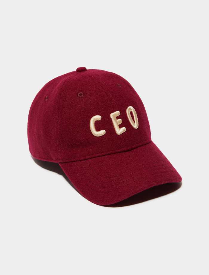 「OUT OF OFFICE」のスローガンが効いたキャップ(19,800円税込)、ニット、スカーフ(33,000円税込)は、旅先でも活躍する軽やかなアイテム。