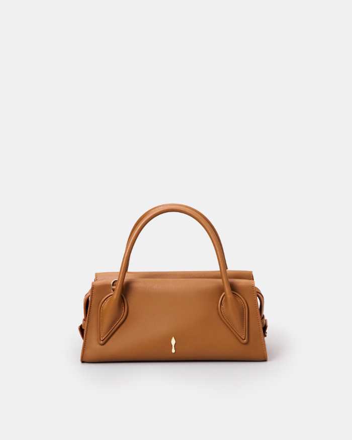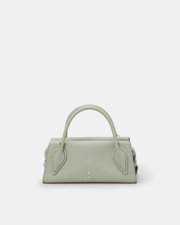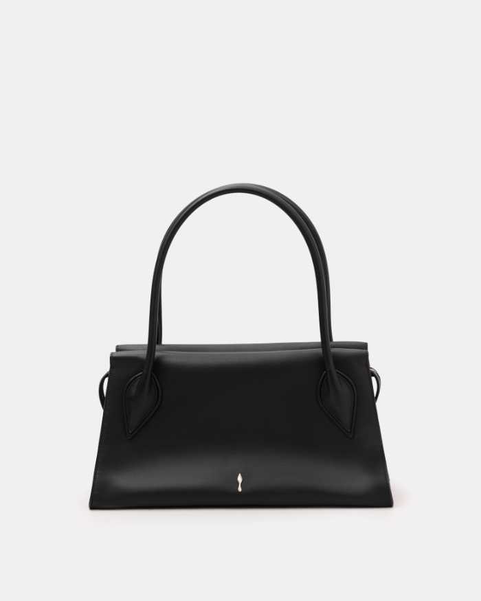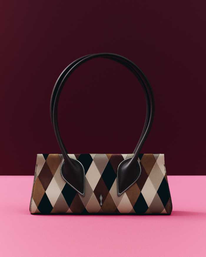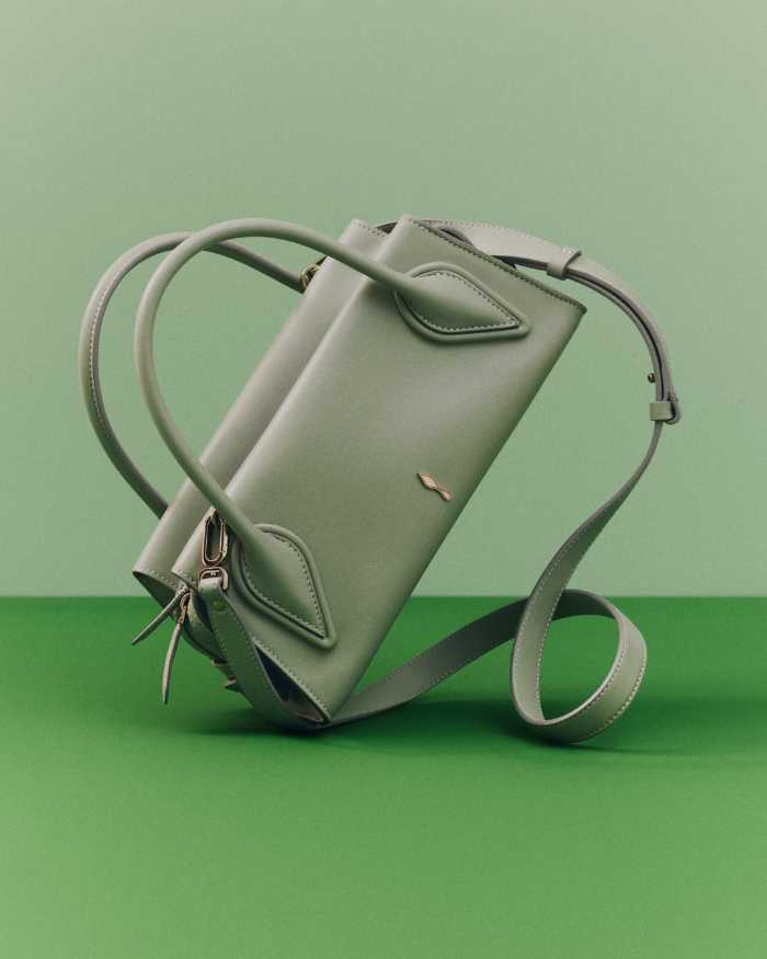 すべてのバッグにはレッドソールを思わせるポイント型シェイプのハンドルがあしらわれ、内側には軽量テクニカル素材を採用。