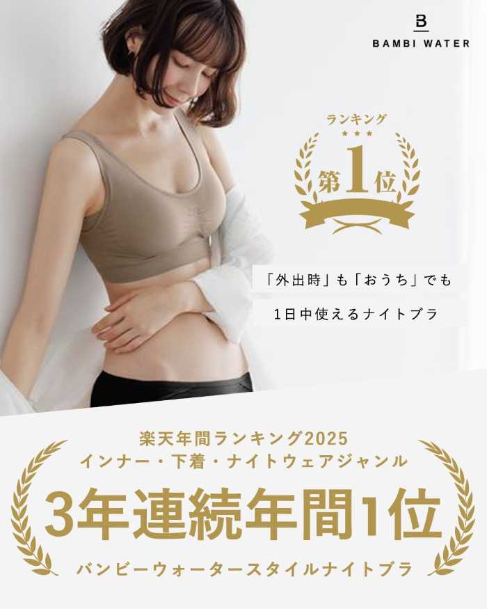 “Quality Wear”ブランドとして支持を集めるBAMBI WATERから、嬉しいニュースが到着しました。看板アイテムであるスタイルナイトブラが、楽天年間ランキング2025のインナー・下着・ナイトウェアジャンルで3年連続1位を受賞。さらにアパレル全体では年間2位、総合ランキングでも25位に輝き、多くの女性から愛されるブランドであることが改めて証明されました。他にも人気のプロテインやインナーが続々と入賞し、その勢いはますます加速しています♡