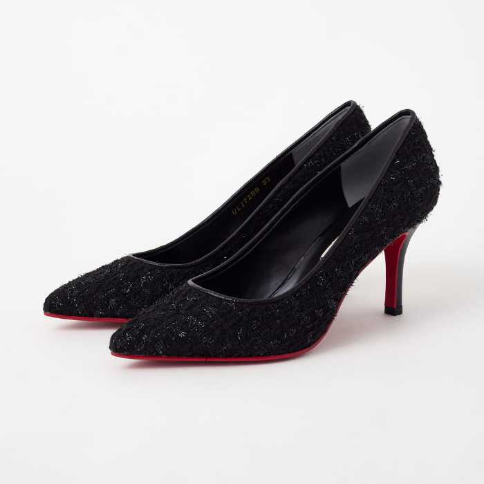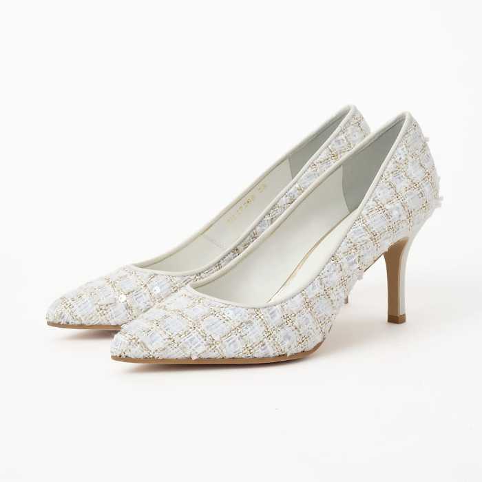 今回のツイードパンプスは、クロミックスツイード、アイボリーミックスツイード、ピンクミックスツイードの3色展開。