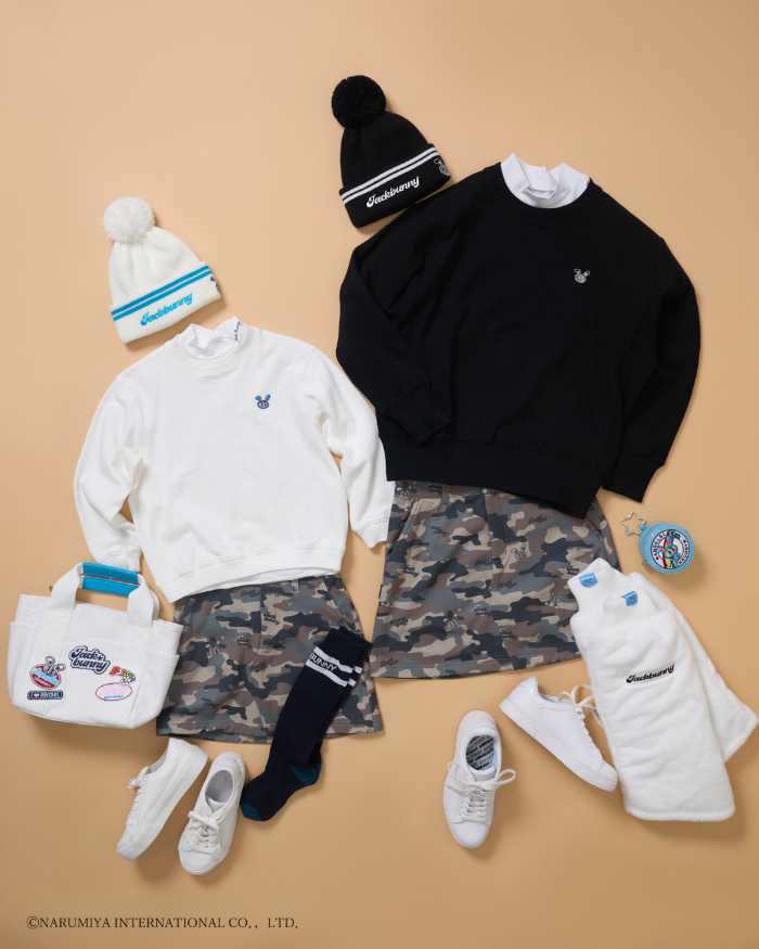 平成キッズの心を掴んだエンジェルブルーが、ゴルフシーンで新たに蘇ります。Jack Bunny!!との初コラボでは、あの「ナカムラくん」がうさぎ仕様になって登場。どこか懐かしくて今っぽいデザインは、大人世代のときめきも、ジュニア世代の新鮮な感性も同時に刺激します。レディースとジュニアのサイズ展開で、親子リンクコーデが叶うのも魅力。冬ゴルフがもっと楽しくなる限定コレクションです♪