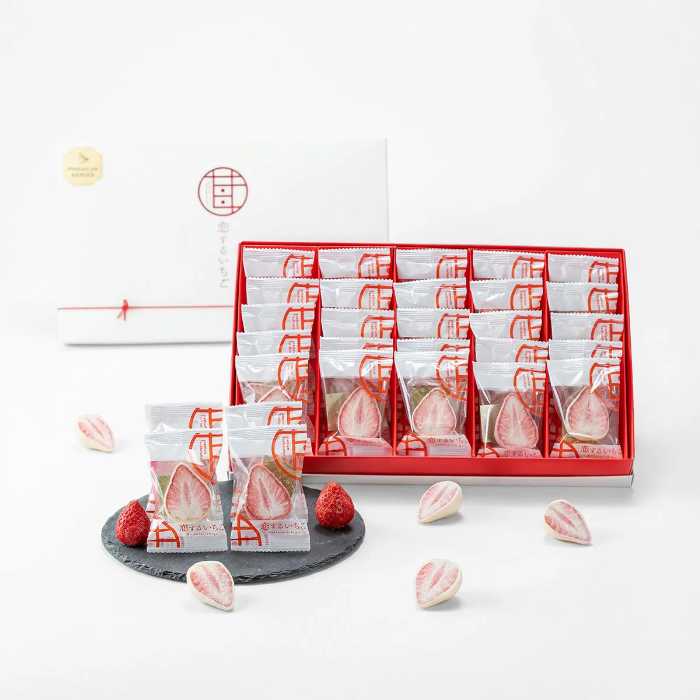 「苺が主役」の恋するいちごプレミアムは、栃木県真岡市産特選とちおとめ2Lサイズのみを使用。フリーズドライ製法で仕上げた苺にホワイトチョコを重ね、サクッとした食感と爽やかな酸味を楽しめます。