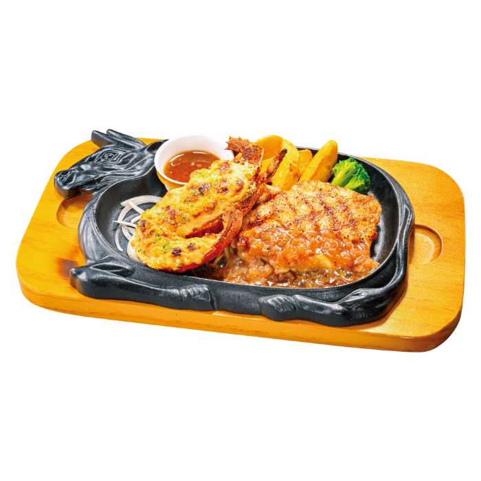 看板商品の大俵ハンバーグと組み合わせた「ロブスター&大俵ハンバーグ」は、150gが2,190円(税込2,409円)、200gが2,290円(税込2,519円)、250gが2,490円(税込2,739円)。