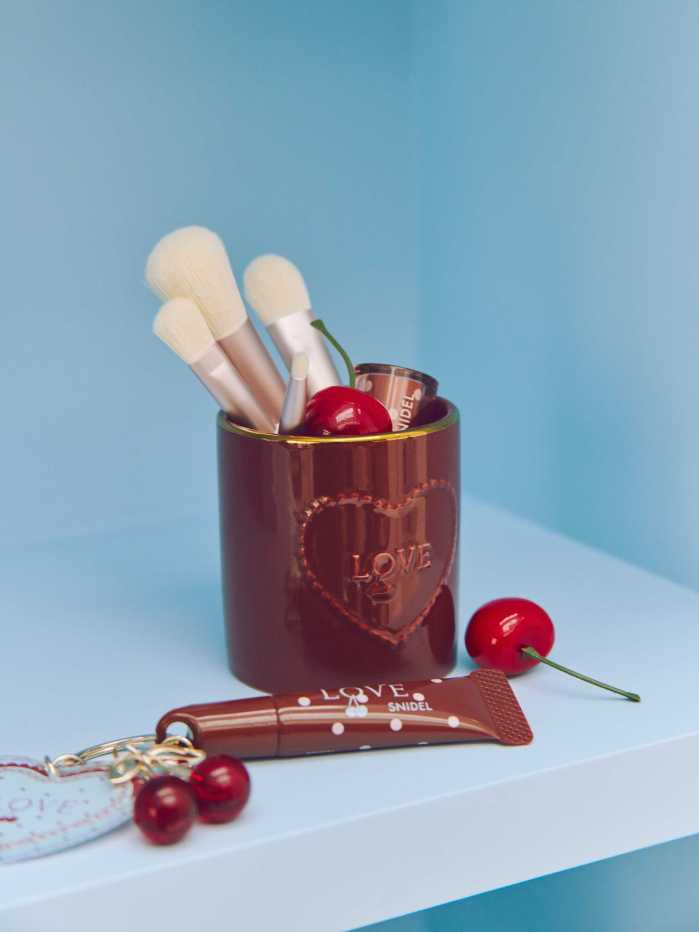 SNIDEL ブラシ セットは限定1種6,600円(税込)。チーク、ハイライト、アイシャドウ用の計4本と、陶器製スタンドがセットに。