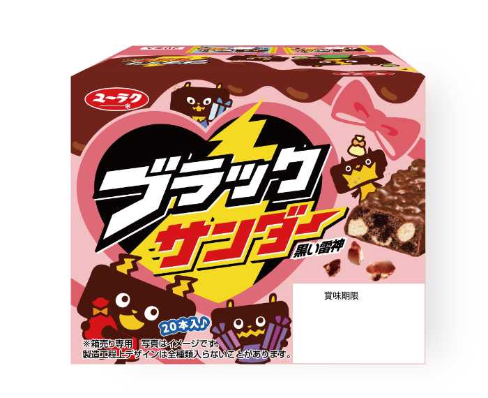 バレンタインを楽しむブラックサンダーのキャラクターが描かれたデザインで、手に取った瞬間からイベント気分を高めてくれるのも魅力です。