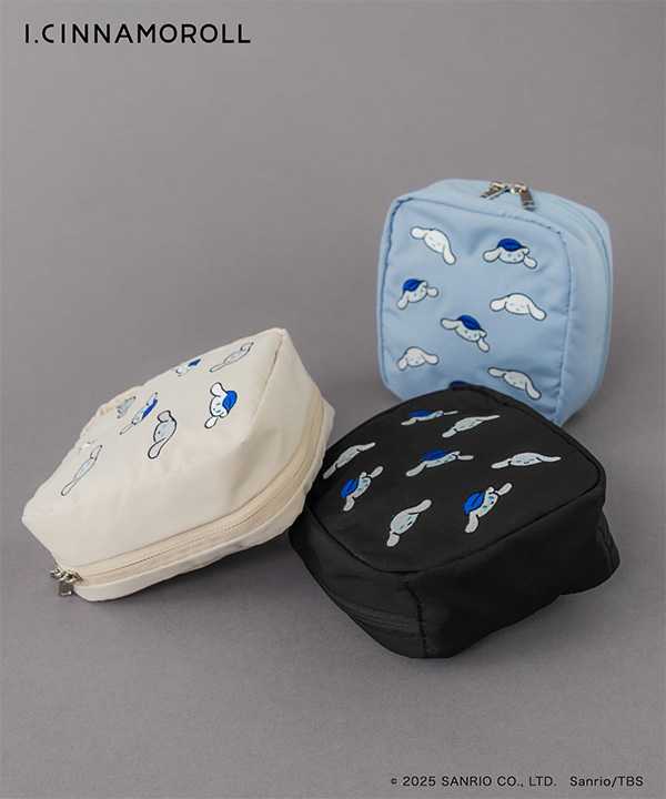 「アイシナモロールスクエアポーチ」は3,960円(税込)、LIGHT BLUE、BEIGE、BLACKの3色。バッグの中を可愛く整理できます。