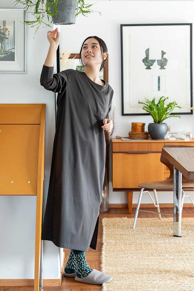 長袖ブラレスワンピース(プレミアムコットン/リラックス)