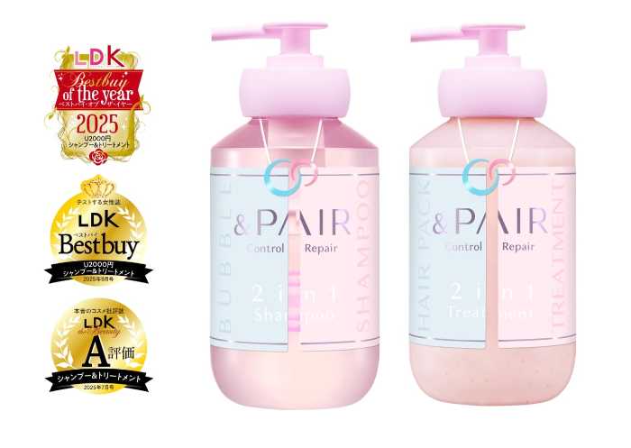 &PAIR Control Repairシャンプー/ヘアトリートメントは、広告やタイアップに左右されない評価で知られる『LDK』『LDK the Beauty』にて高評価を獲得。