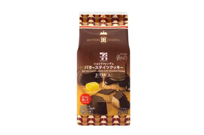「セブンカフェショコラフォンデュバターステイツクッキー」は、発酵バター含有率34%の香ばしいクッキーに、とろける濃厚ショコラをたっぷりまとわせた冬季限定スイーツ。