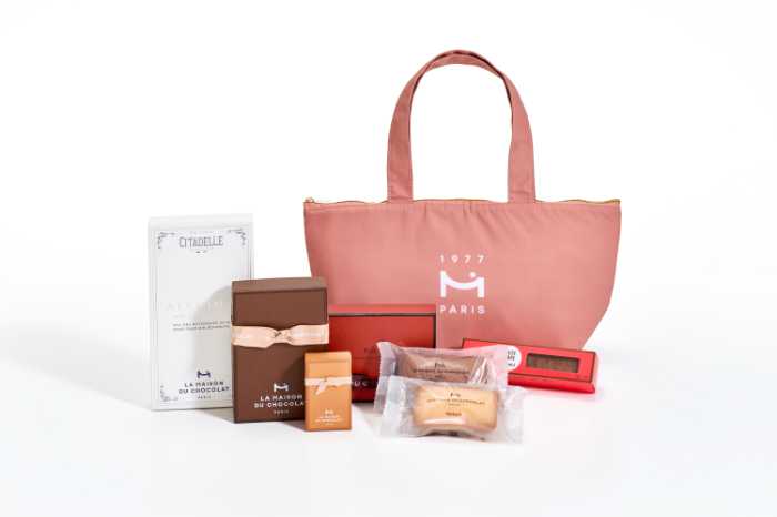 ボンボン・ドゥ・ショコラやトリュフ、フィナンシェなど計7点を、オリジナル保冷バッグ付きで楽しめます。常設ブティックとオンラインブティック限定の2種類展開で、新年の贈り物にも最適です。