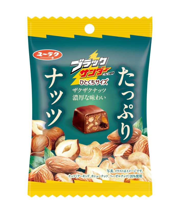 ブラックサンダーの「ひとくちサイズ たっぷりナッツ」と「ひとくちサイズ たっぷりフルーツ」は、数量限定ならではの贅沢な商品です。