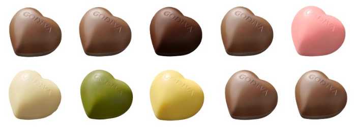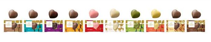 ハート形チョコレートは全10種類で、「ジョイフルミックスミルクヘーゼルナッツ」「ミルク」「ダーク」「ミルクソルテッドキャラメル」「ホワイトあまおう苺」「バニラ香るホワイトチョコレート」「ホワイト宇治抹茶」「ホワイト安納芋スイートポテト」「ティラミスフレーバー」「カフェラテ」を展開。
