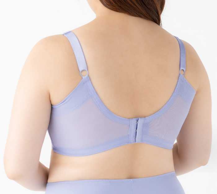 カップ表側の左右一体型ホルダーがバストの広がりをおさえ、ノンワイヤーでもすっきりしたシルエットに。さらに脇高設計とU字バックで、脇や背中に流れがちなラインをやさしくカバーします。