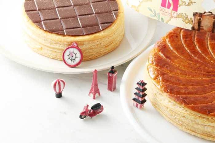 今年のフェーヴのテーマは「Voyage=旅」。エッフェル塔やビッグ・ベン、気球などをモチーフにした全6種類の陶製フェーヴの中から、いずれか1つが添えられます。