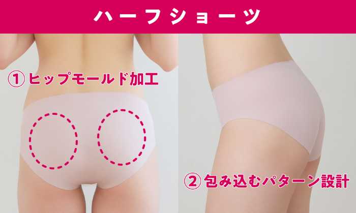 ヒップモールド加工と包み込むパターン設計で、ショーツもズレにくく、全身を美しく整えます。