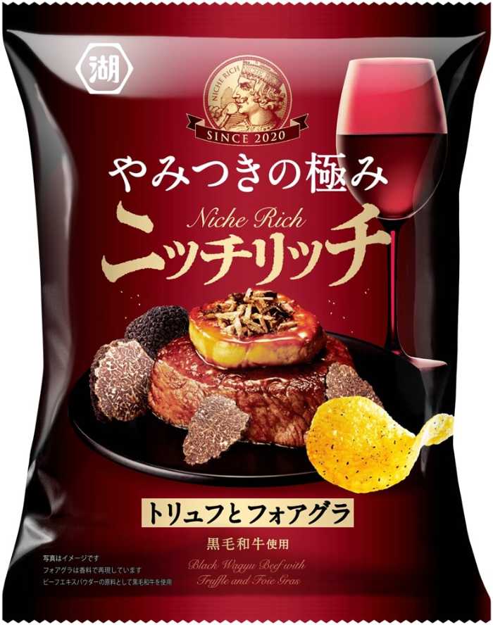 「ニッチリッチトリュフとフォアグラ」は、芳醇なトリュフの香りと、黒毛和牛の旨みが際立つ濃密なフォアグラをイメージした味わい。口に入れた瞬間から広がるコクと香りが、ワインや洋酒と好相性です。