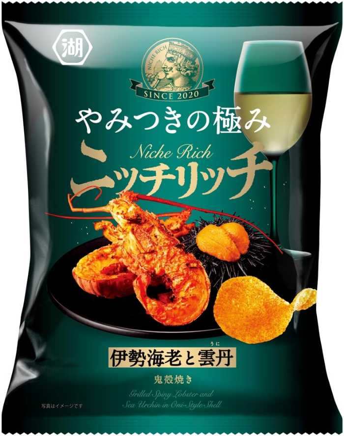 「ニッチリッチ伊勢海老と雲丹」は、伊勢海老の旨みと雲丹のまろやかな甘みを重ねた、濃密で香ばしい仕上がり。海の幸ならではの深いコクが広がり、日本酒やシャンパンなどとも相性抜群です。