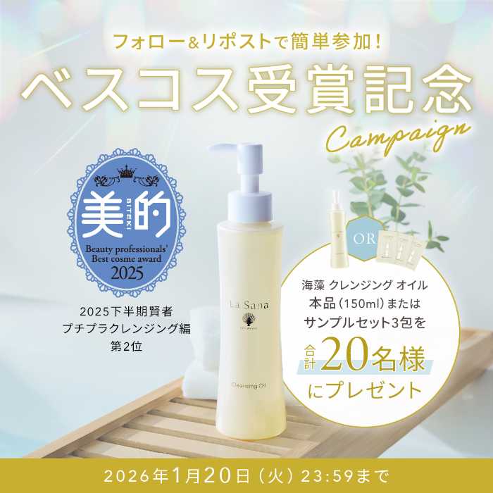 ヘアケアでおなじみの海藻コスメブランド「ラサーナ」から、スキンケア好き注目の嬉しいニュースが到着しました。ブランドの長い歴史の中で初となるベストコスメを受賞したのは、毎日のメイクオフを心地よく整えるクレンジングオイル。肌へのやさしさと確かな落ち感を両立した一本は、忙しい日々のスキンケア時間をちょっと特別にしてくれます。さらに受賞を記念したキャンペーン情報も見逃せません♪