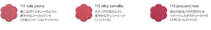 唇には満開の花のようなツヤを叶える「ジルスチュアートリップブロッサムグロウ」限定3色、各3,520円(税込)が登場。なめらかな塗り心地と色もちのよさで、華やかな口もとを演出します。