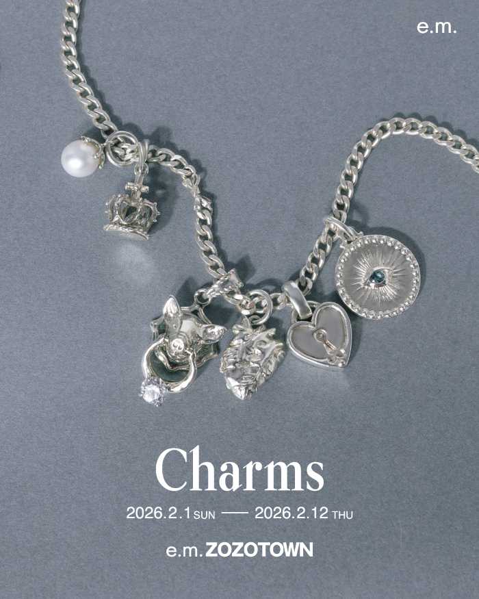 ジュエリーブランドe.m.から、感性を刺激する限定イベント「Charms」がZOZOTOWNで開催されます。アンティーク感漂うモチーフから遊び心あふれるデザインまで、物語性のあるチャームが勢ぞろい。受注販売だからこそ叶う、自分らしい組み合わせを考える時間も魅力のひとつです。身に着けるたび気分が高まる、とっておきのチャーム選びを楽しんでみて。