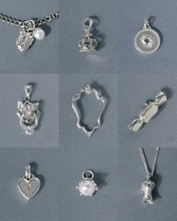 アンティークなKEYや幸運の象徴とされるブタのメダル、キュービックジルコニアをセッティングしたクラウンなど、ブランドオリジナルの世界観が詰まった構成です。