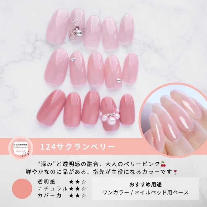 そして206 sakura whip(ミルキーピンク)の全5色。ナチュラルな透明感で自爪を美しく見せつつ、華やかさもプラス。