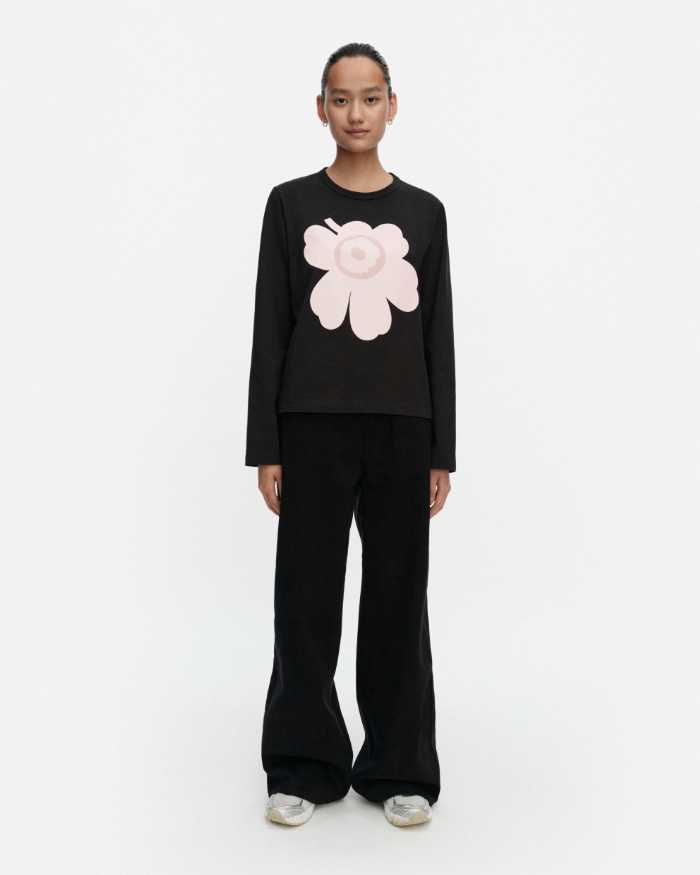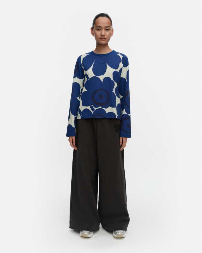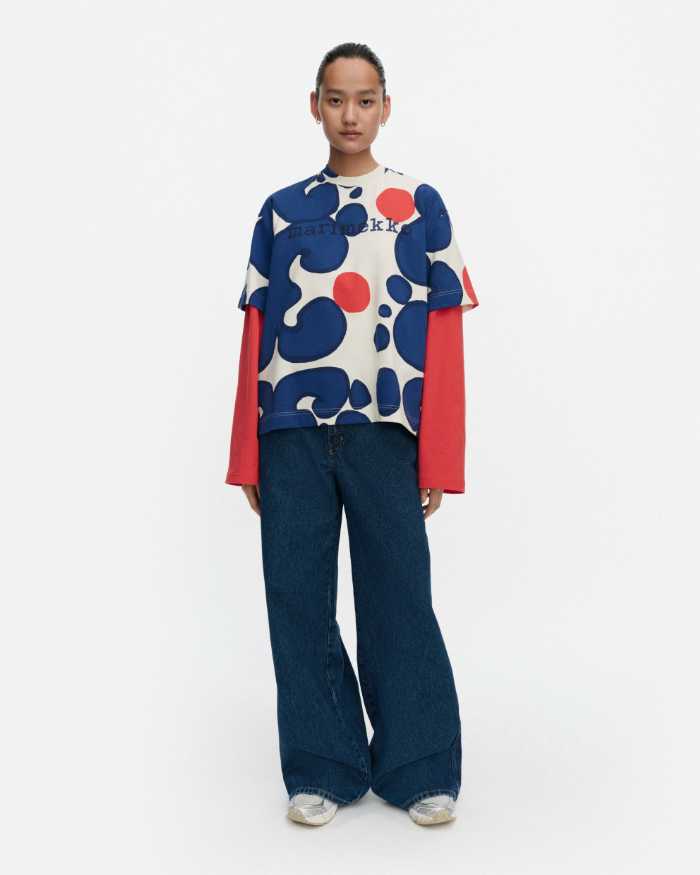 プリントには、マリメッコを代表するUnikkoやTasaraitaに加え、1960年代にアンニカ・リマラが手がけた装飾的なKeidasが大胆に登場。