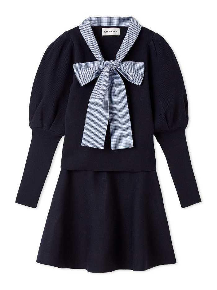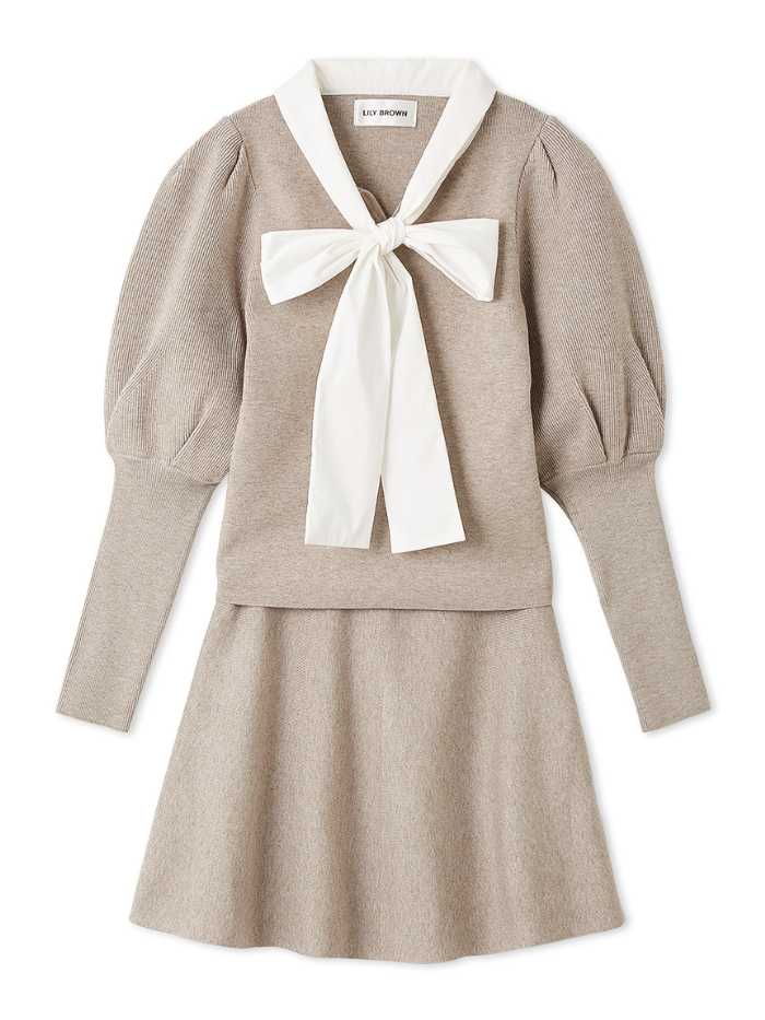 「ボウタイリボンニットセットアップ」は、昨年好評だったデザインが進化し、今年らしいモード感と女性らしさが絶妙なバランスで表現されています。
