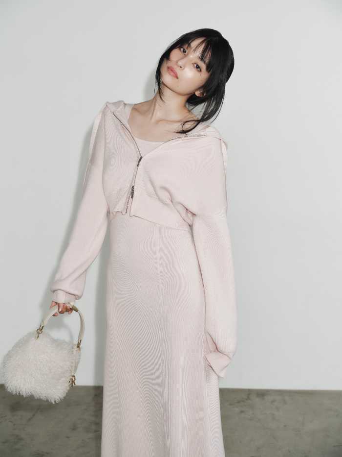 「ジップパーカ&キャミワンピースセット」は、シンプルながらもディテールにこだわったKNIT DRESS。キャミワンピースは厚みのある総針編み地で、ほどよく身体にフィットし上品なシルエットを演出します。