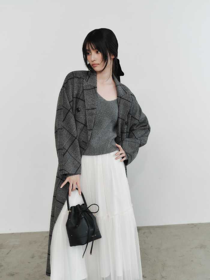 重なるチュールが印象的なスカートは、ティアードの程よいボリューム感で、トップスを選ばず活躍。カラーはBEG,BLU,GRYの3色展開で、価格は17,600円です。