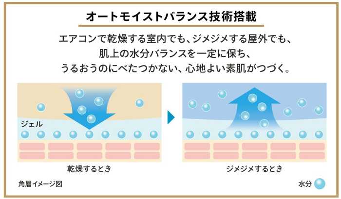 「アネッサパーフェクトUVスキンケアジェルNB」は、湿度変化に応じて肌上の水分バランスを一定に保つ独自の「オートモイストバランス技術」を搭載。
