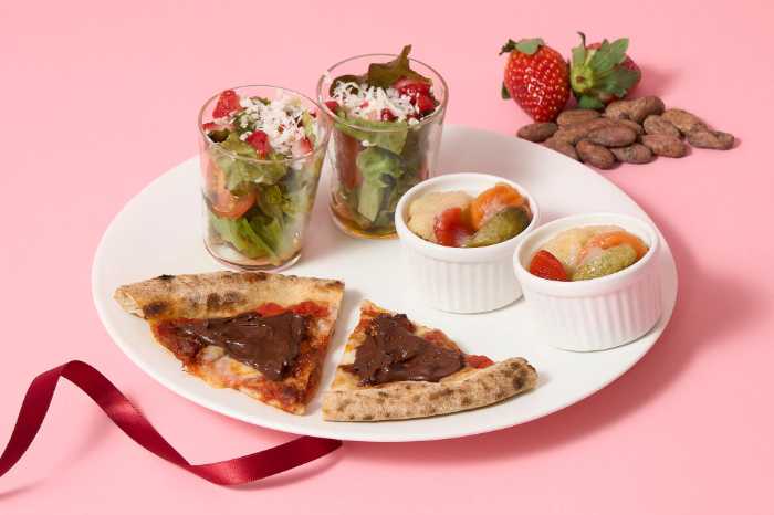 苺スイーツから8層のチョコレートオペラ、名店とのコラボピザまで揃う贅沢な内容で、バレンタイン&ホワイトデーにぴったりです。