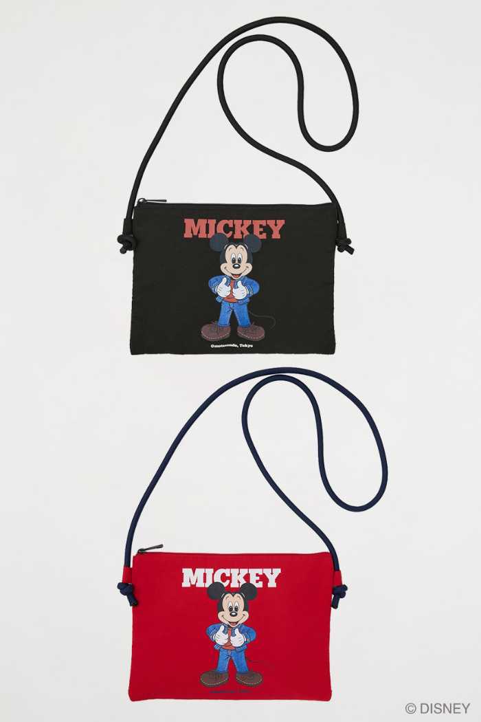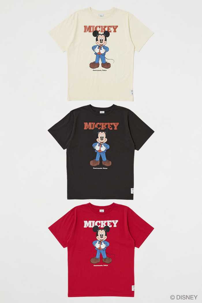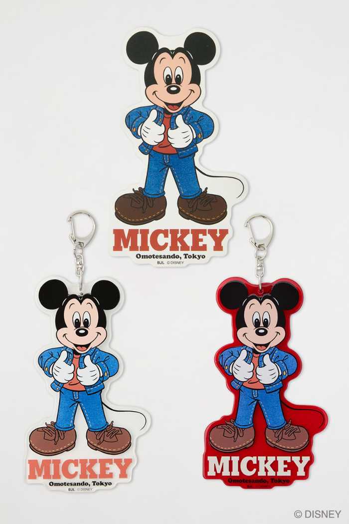 MUSがオリジナルで描き起こした「DENIM MICKEY」は、赤いTシャツとブラウンのブーツにデニムジャケットを合わせた洗練されたスタイルが印象的。