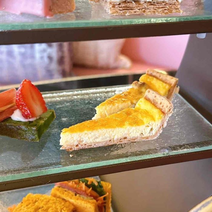 ゴールドが美しいスタンドには、旬の「あまおう」を贅沢に使用したスイーツとフレンチを想わせるセイボリーが並びます。フォションの魅力を象徴するマカロンや、真っ赤に輝くナポレオンなど、一段ごとに異なるあまおうの表情に、ひと目で心を奪われます。