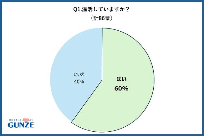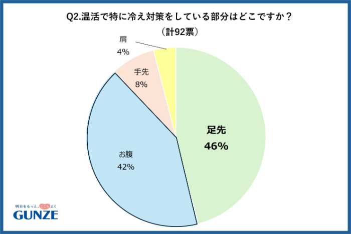グンゼ公式Xで行われた温活アンケートでは、温活をしている人が60%、冷え対策部位は足先に次いでお腹が42%と高い結果に。