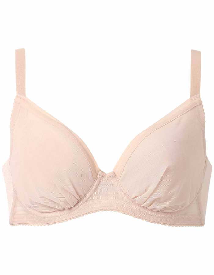 ワイヤーなしでも支えられる理由は、バージスライン全体に使用された高密度不織布と、カップ全体を包み込むパワーネット構造。