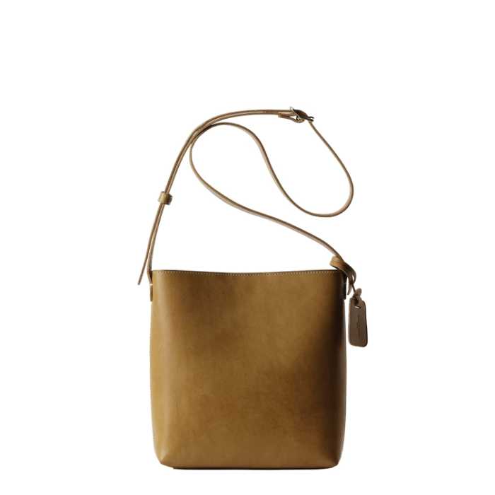 明るさの中に渋みを含んだベージュ系トーンで、同系色コーデにも自然に溶け込みます。使うほどに色味が深まり、やがてブラウン系へと変化するエイジングも魅力です。