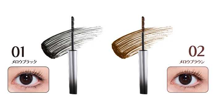 カラーは全2色展開。01メロウブラックは、つばさのようにパッチリとしたまつ毛を演出し、存在感のあるまなざしに。02メロウブラウンは、羽根のように軽やかでナチュラルな仕上がりが特長。