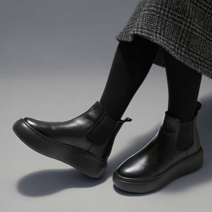 存在感のあるプラットフォームでありながら、すっきりとした印象で、パンツにもスカートにも好相性。新開発の柔らかなレザーが足を包み込み、ブーツ特有のフィット感を実現します。